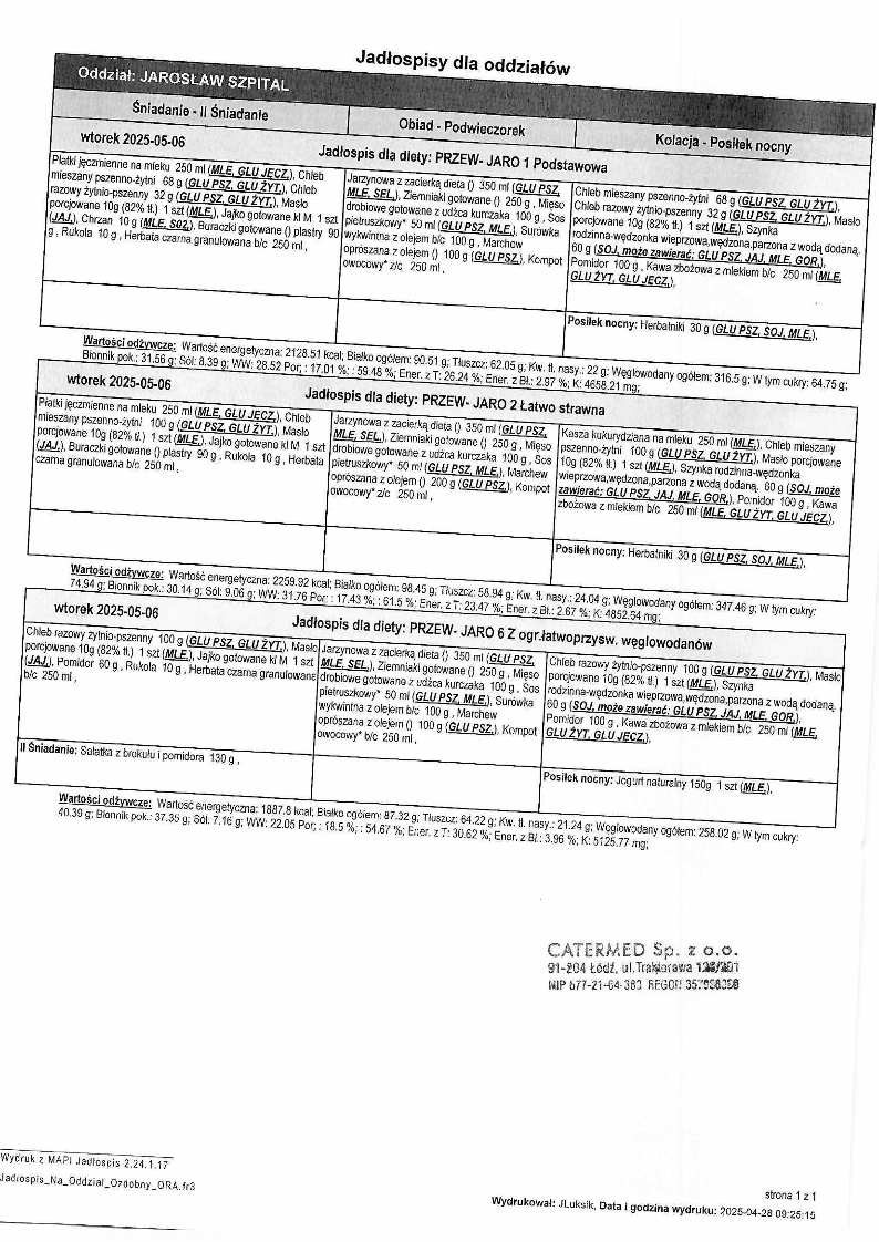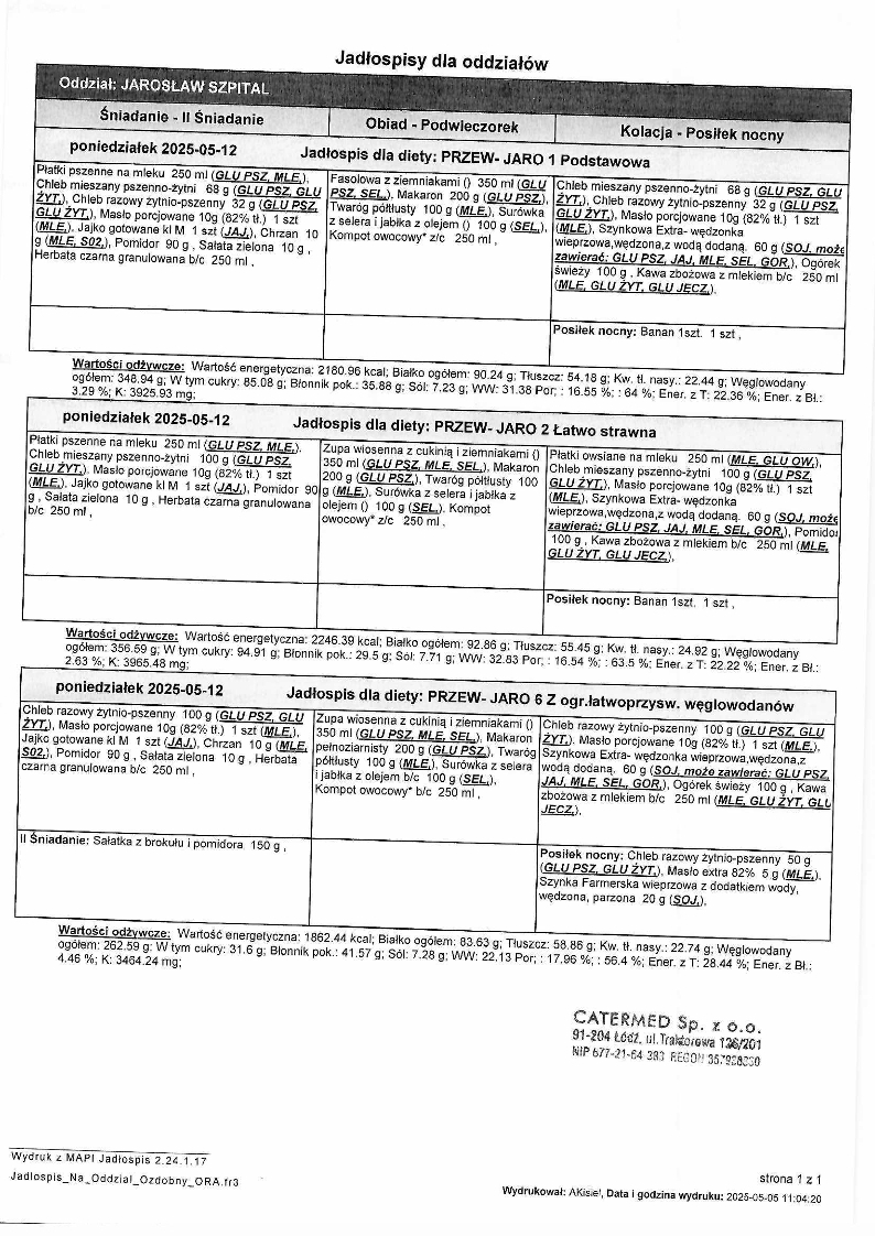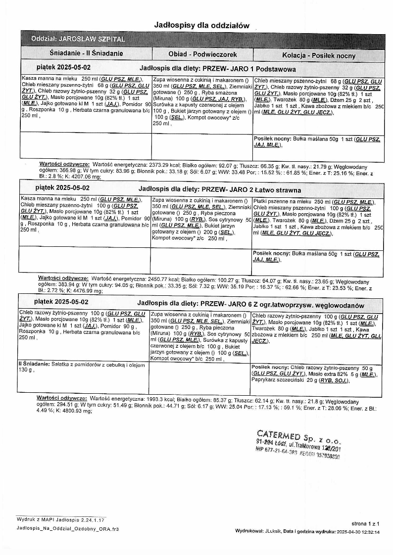 Jadłospis Maj 2025