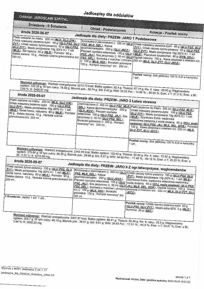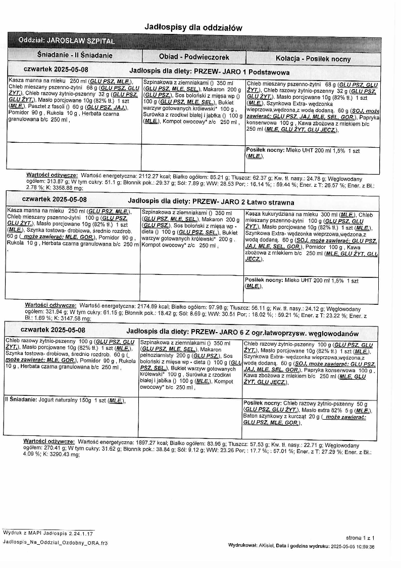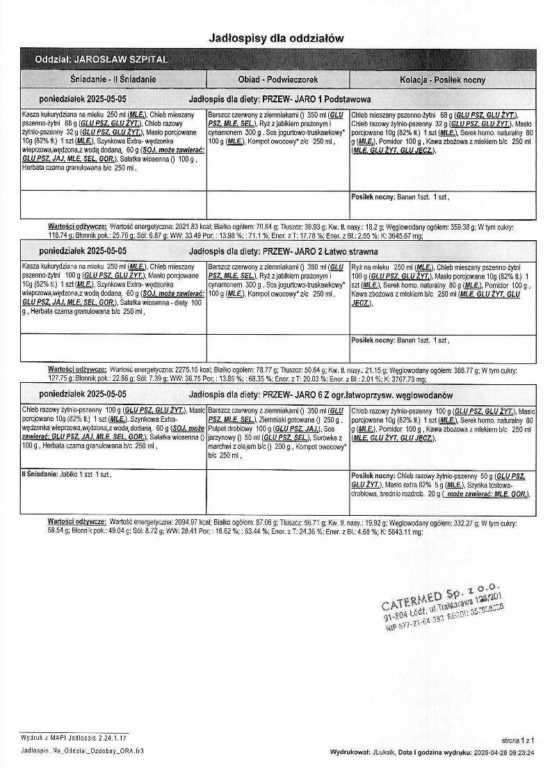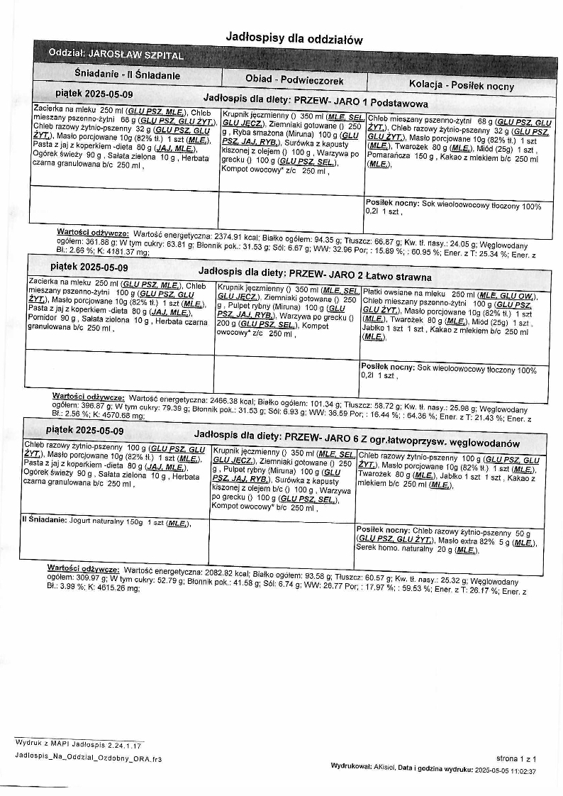 Jadłospis Maj 2025